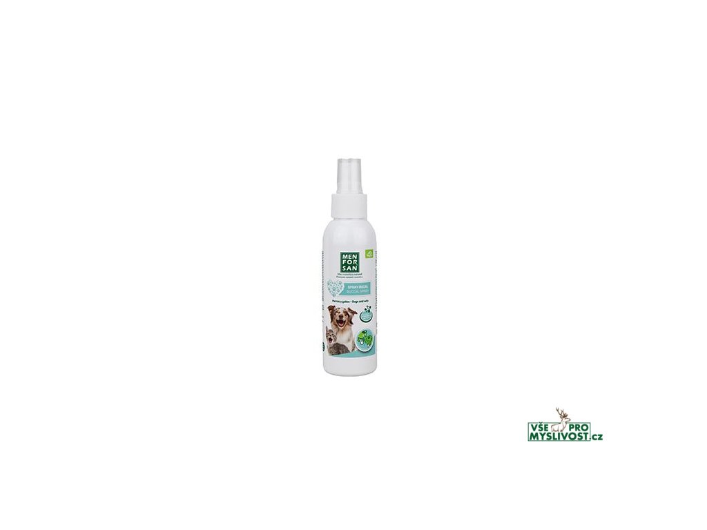 Menforsan ústní sprej proti nepříjemnému dechu pomůže ve chvíli, kde našemu čtyřnohému příteli - mírně řečeno - „zavání“ z tlamy. Obsahuje speciální účinné látky a éterické oleje chlorofylu, které podnítí olizování zubů po aplikaci. Tím je podpořeno účinné odstranění nahromaděného plaku.