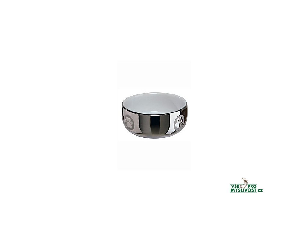 Miska keramická kočka stříbrná s tlapkou 0,3l 11cm TR