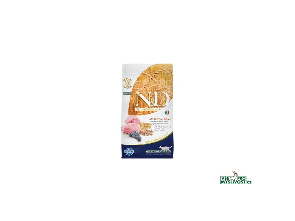 N&D Low Grain Lamb & Blueberry Adult CatJehně, špalda, oves a borůvky.