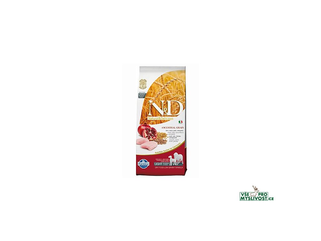 N&D Low Grain Chicken & Pomegranate Light M/L DogLIGHT - Kuře, špalda, oves a granátové jablko.