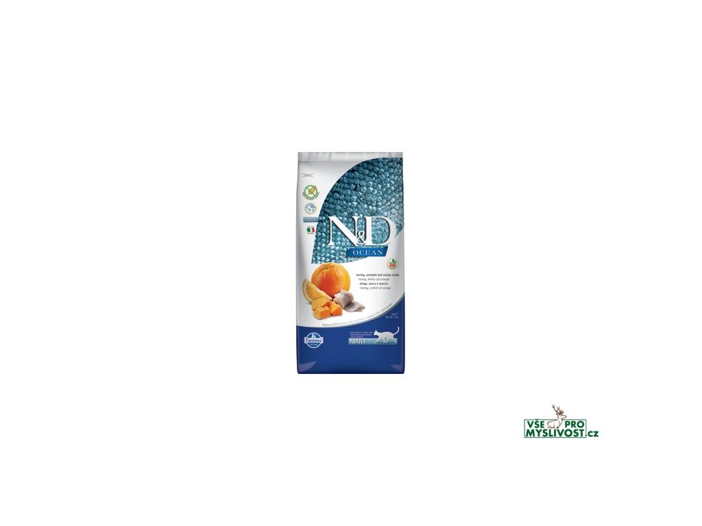 N&D OCEAN Herring, Pumpkin & Orange Adult CatSleď, dýně a pomeranč.