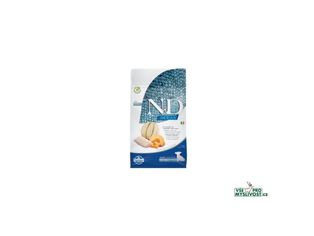 N&D OCEAN DOG Codfish, Pumpkin & Cantaloupe Melon Puppy MiniTreska, dýně a kantalupský meloun.