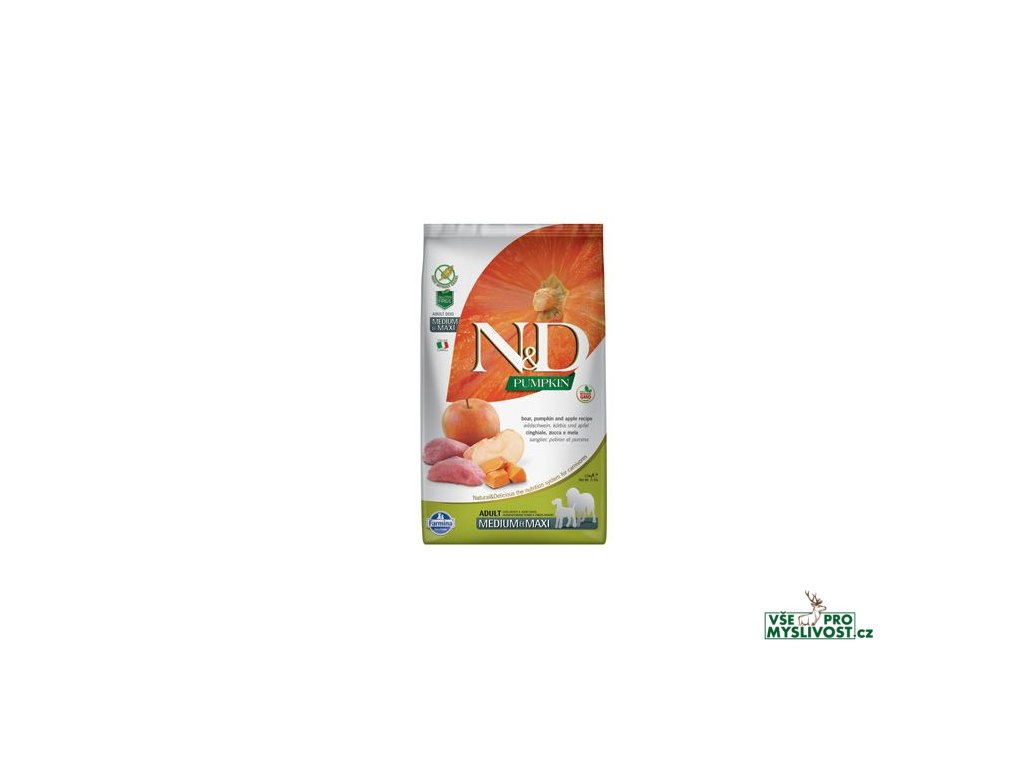 N&D Grain Free Pumpkin Boar & Apple Adult M/L DogDivočák, dýně a jablko.
