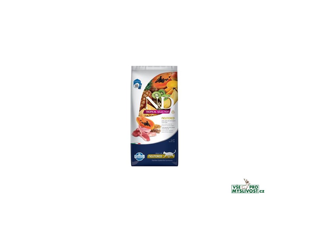 NEUTERED - Jehně, špalda, oves a tropické ovoce. Kompletní krmivo pro dospělé kastrované kočky.