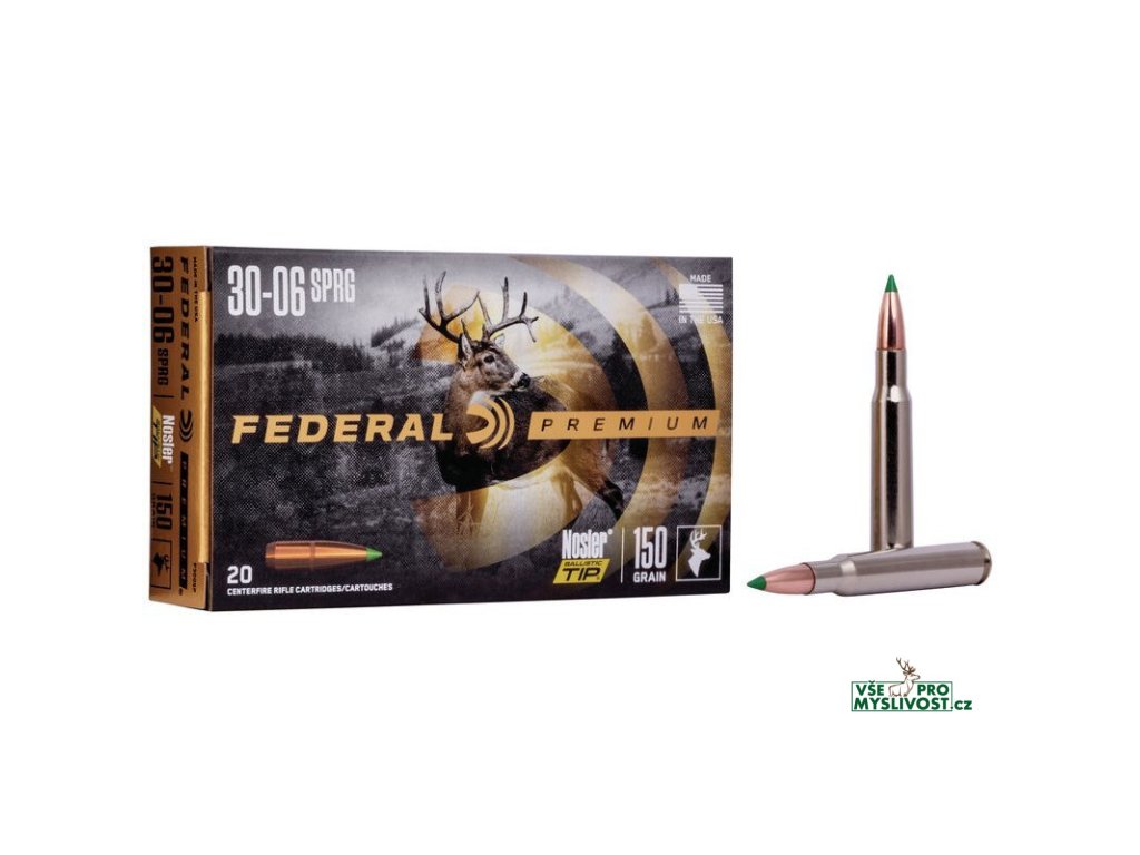Lovecký náboj od Federal produktové řady Premium laboravaný střelou Nosler Ballistic Tip nabízí konzistentní výkon, přesnost, střela pak kontrolovanou expanzi. Náboj je vynikající pro lov středně těžké zvěře ve všech vdálenostech.