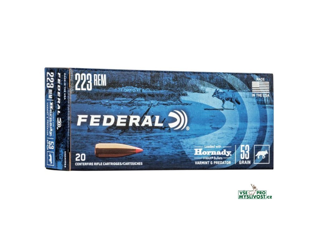 Náboj kulový Federal, Varmint-Predator, .223 Rem., 53GR (3,4g), Hornady V-Max