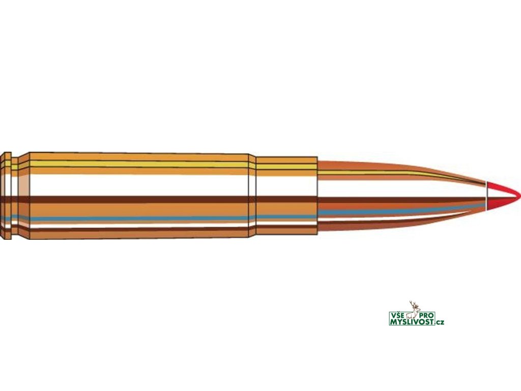 Konstrukce střely Hornady A-MAX vznikla z neúnavného uplatňování všeho, co víme o balistice a letových vlastnostech. Závodní střelci totiž vyžadují dokonalost od svých nábojů pokaždé, když vstoupí na střelnici. Aerodynamický ogivální profil, ostrá špička a nepřekonatelná soustřednost designu A-MAX mu dávají extrémně vysoký balistický koeficient pro téměř dokonalost v letu. Střela A-MAX je konečným výsledkem více než půlstoletí studia výkonnosti střely. Každý aspekt přesnosti byl vložen do střely A-MAX. Od jeho polymerové špičky až po úhel základny je střela A-MAX navržena pro extrémní přesnost.