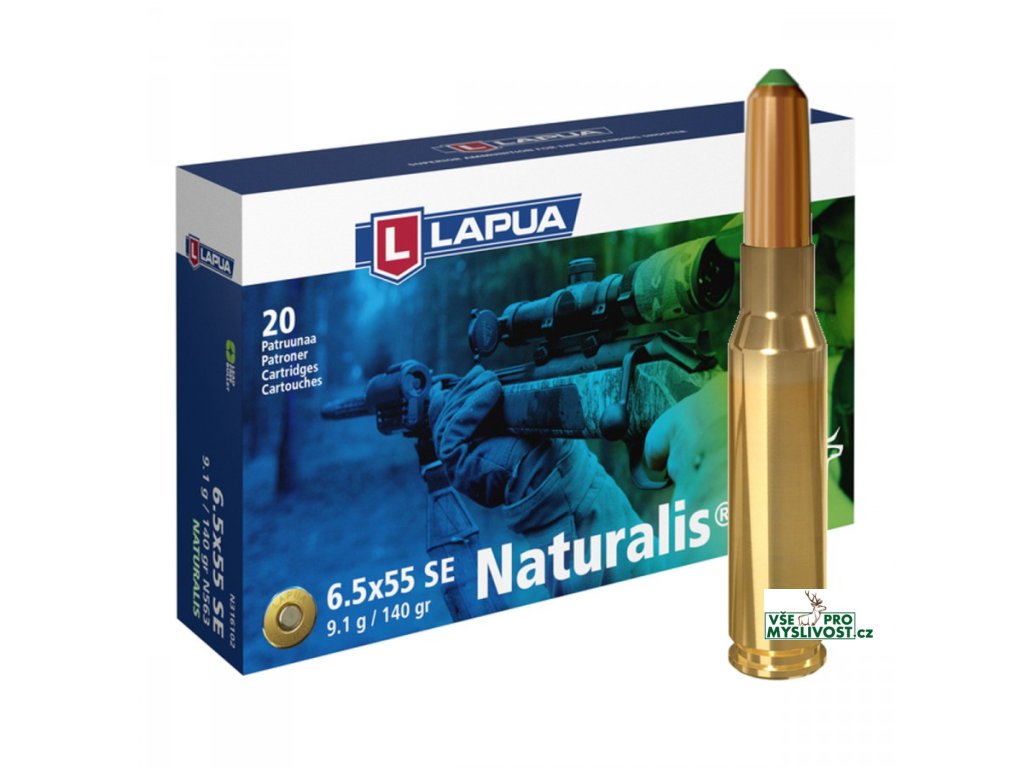 Náboje Lapua 6,5x55 SE jsou přesné a všestranné. Střely Lapua Naturalis® jsou na trhu od roku 2002 a nyní prezentují třetí generaci bezolovnatých loveckých střel. Použití mají tak i v honebních revírech, kde jsou zakázány střely s olověným jádrem. Nový design Naturalis® používá nejmodernější technologie k vytvoření konzistentní a kontrolované expanze. Konstrukce polymerového ventilu využívá hydraulické síly k vytvoření optimální deformace. Unikátní design měděné střely a polymerové špičky vytváří pevnou a téměř nerozbitnou konstrukci. Proces deformace začíná ihned po nárazu. Ventilem na špičce střely se deformace rozšiřuje symetricky a bez fragmentace. Střela Lapua Naturalis® si po zásahu zachová 100% své hmotnosti. Energie a proces expanze snižuje riziko zranění nebo prodloužení utrpení zvířete. Zásah minimalizuje ztrátu masa. Zůstane jen čistá rána.