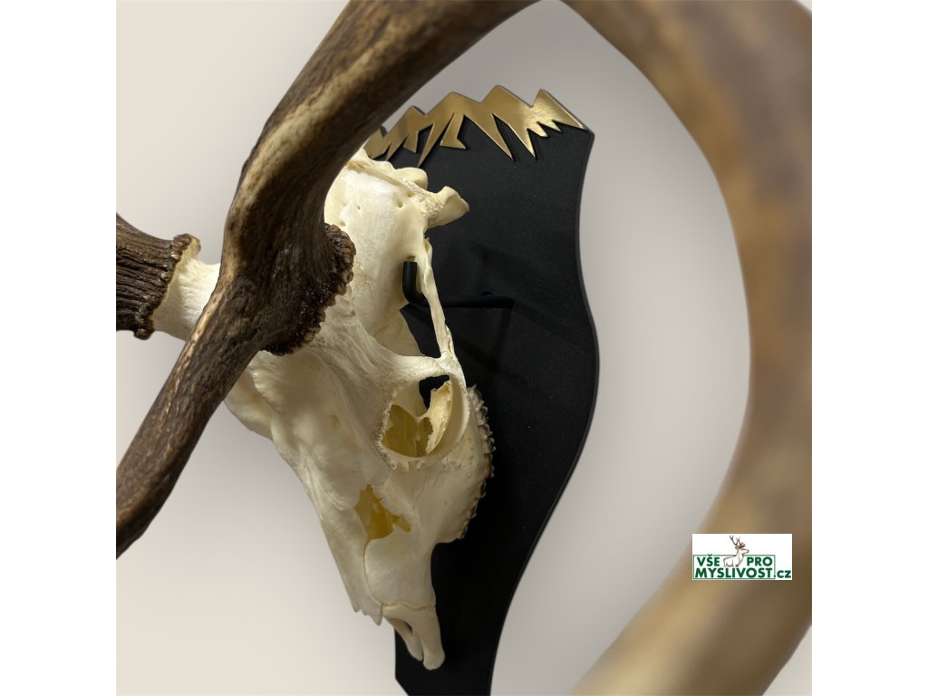 Elegantní kovový držák určený pro bezpečné a estetické vystavení trofeje daňka. Robustní konstrukce zajišťuje pevné uchycení, zatímco černý štítek se zlatým horským motivem dodává trofeji moderní a reprezentativní vzhled. Držák je vhodný pro různé velikosti dančích trofejí a díky jednoduché montáži jej snadno umístíte do loveckého salonku, obývacího pokoje či kanceláře. Ideální volba pro myslivce, kteří chtějí spojit praktické uchycení trofeje s atraktivním designem.