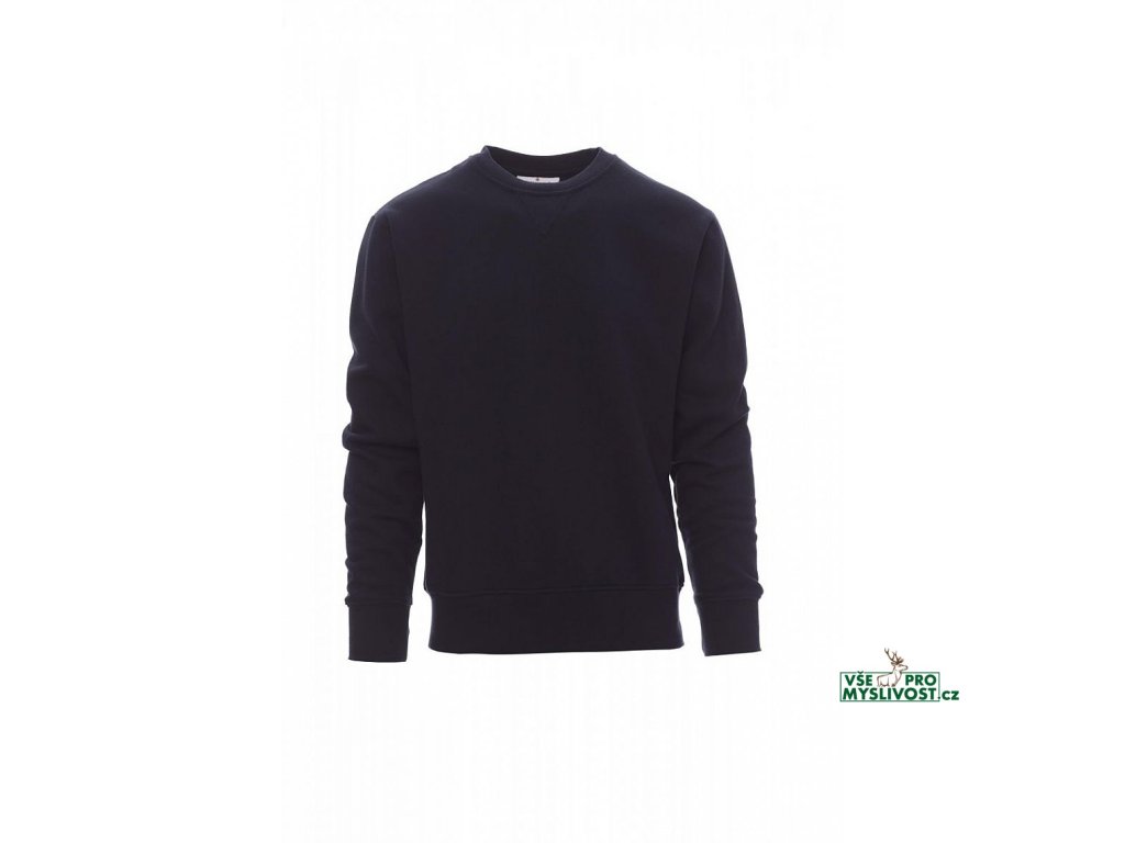 Pánská mikina s kulatým výstřihem, V-prošívání pod krkem, všívané rukávy, manžety a pas s elastickým žebrováním, zesílené švy.