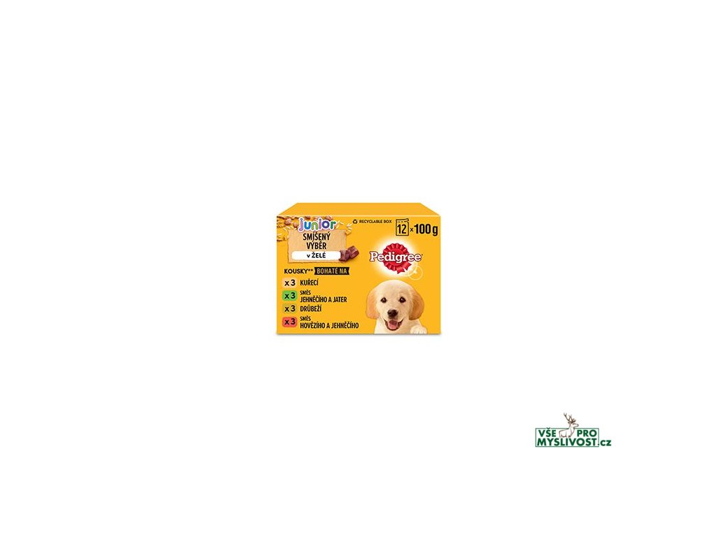 Pedigree Junior kapsičky jsou ideálním masovým krmivem pro štěňata. Malé masové kousky tvořené kuřecím, jehněčím, hovězím či drůbežím masem v čerstvém želé bude Vašim malým miláčkům jistě chutnat. Obohaceno o rýži jako přírodního nositele vlákniny a s vitamíny představuje toto krmivo plnohodnotný pokrm, který splňuje potřeby mladých pejsků. Zcela bez cukru, chutné a dobře stravitelné pro štěňátka v prvních měsících života.Vlastnosti produktu Pedigree Junior kapsička: