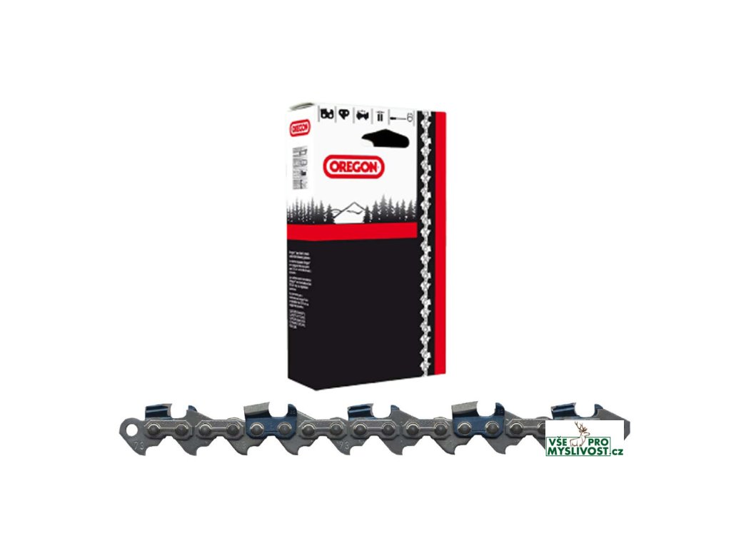 Řetěz na motorovou pilu OREGON s šířkou vodícího článku 1,6 mm, dělením .3/8", dlouhý 56 článků, s hranatým profilem řezného článku. Tento .3/8" řetěz je určen pro náročné profesionální použití (hranatý zub).Plně dlátovitý (hranatý) řezací zub.Speciální konstrukce omezovací patky snižuje sklon ke zpětnému vrhu.Vibe-BanTM konstrukce snižuje vibrace o více než 25%.LubrilinkTM ve spojovacích článcích pomáhá roznášet olej.LubriwellTM jsou olejové otvory ve vodících článcích, které pomáhají dopravovat olej po celé délce lišty ve vodící drážce.Směrová značka na hřbetu řezacího zubu usnadňuje ostření.Vhodný pro pily o obsahu od 50 cm3 do 100 cm3 s délkami lišt od 13" do 24" (33 až 60 cm).Průměr pilníku 5,5 mm (7/32")