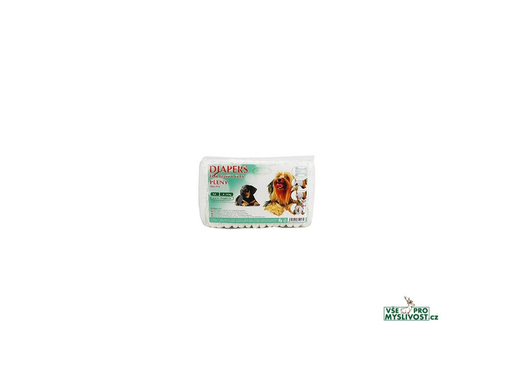 Jednorázová absorbční plena pro psy, zejména štěňata, háravé feny, nemocné psy atp. vhodná na cesty, v domácnosti či pobytu na zahradě, v noci či ve dne. Pleny jsou vyrobeny tak, aby byly pohodlné a nijak nebránili v pohybu. Jemná a měkká povrchová vrstva z netkaného textilu odvádí rychle vlhkost. Mimořádně savý materiál vstřebává rychle tekutinu a vnější folie spolehlivě chrání před prosáknutím. Plena se lehko nasazuje díky upínacím páskům, které jsou upraveny tak, aby se nezachytávaly srst mazlíčka