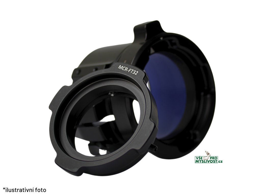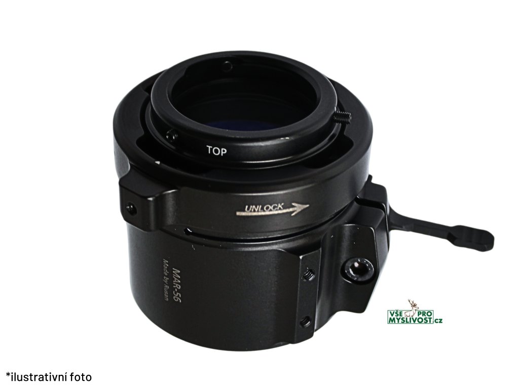 Jednoduché nasazení spočívá v upevnění objímky na puškohled a otočením předsádky s nasazeným redukčním kroužkem (konektorem). Pomocí chytré funkce zamknutí předsádku upevníte na místě. Sundání je pak naprostou hračkou! Objímku můžete nechat pohodlně připevněnou na puškohledu, zatímco otočením odemknete a sejmete přístroj s redukcí.
