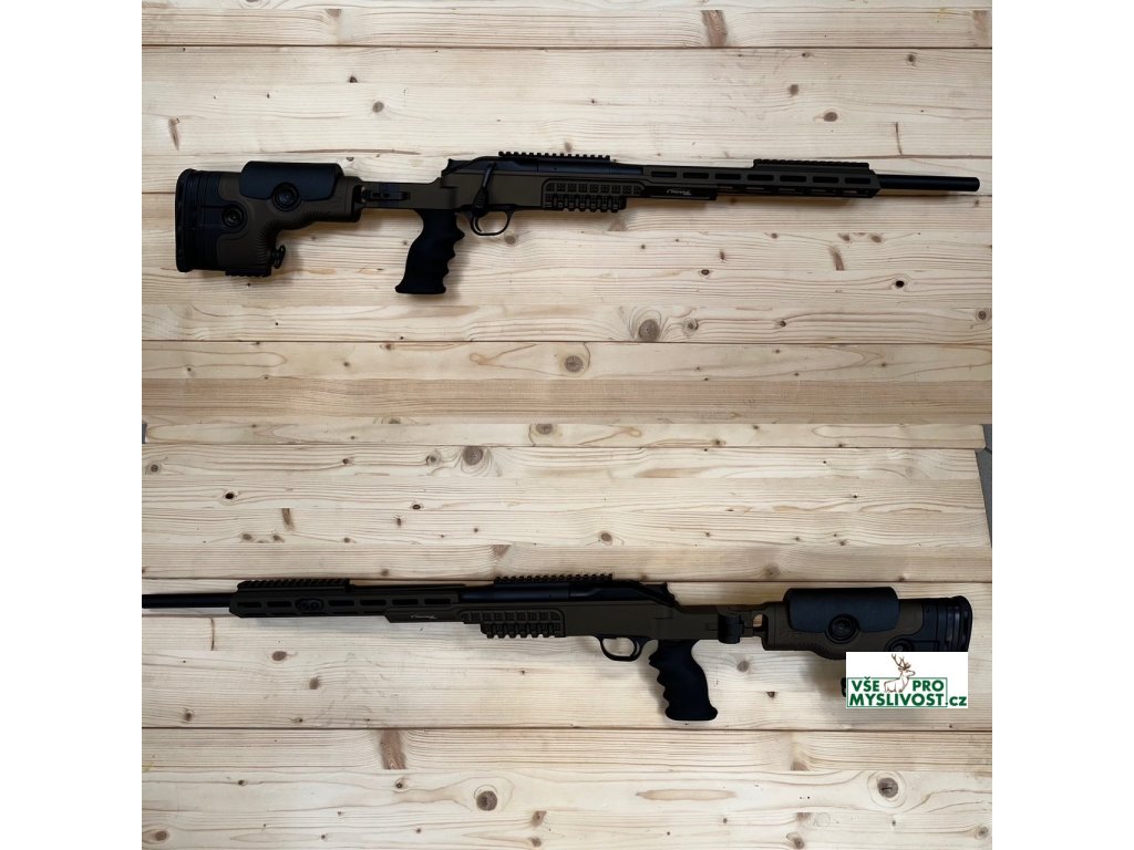 Custom postavená puška s CUSTOM hlavni v ráži 6mm Creedmoor v délce 56cm (22") (závit M15x1mm), která zaručuje soustřel pod 1/2 MOA se střelivem Hornady Match, 108GR ELD Match, HOR81391! Zbraň je s tímto střelivem i korektně "zaběhnuta" a soustřel potvrzen na 100 a 300m! Zbraň je opatřena spouští ATZL a je osazena ve špičkové, sklopné a stavitelné pažbe GRS Ragnarok v Midnight Bronze Cerakote (na přání možno dodat i v jiné). Základna montáže je pevná na rozhraní Weaver/Picatinny se sklonem 20 MOA, hmatník závěru zvětšený od Ulfhednar a adaptér pro dvojnožku typu Harris od Magpul. Možno dodat i se Spigot adaptérem pro dvojnožky GRS nebo VersaPod apod. Nástřelek je dosahováno s použitím puškohledů Leupold MARK 5HD nebo MARCH a za použití tlumiče A-TEC OPTIMA 50.