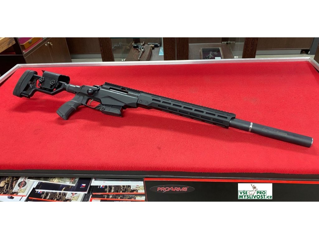 Oblíbená puška se sklopnou pažbou v úpravě s integrovaným tlumičem A-TEC Integral. Tlumič A-TEC Integral lze instalovat i dodatečně na stávající zbraně, které to umožňují. Modulární pažba Zbraň T3x má novou modulární pažbu s možností prodloužení jejího konce za pomoci speciálních nástavců. Nástavce jsou prodávány zvlášť. Vylepšená rukojeť Rukojeť, která nikdy neklouže! Syntetická pažba s novým asymetrickým vzorkem, který byl speciálně navržen pro pevný úchop za všech povětrnostních podmínek. Vylepšené pohlcení zpětného rázu Modely T3x přícházejí s novou technologií pohlcení zpětného rázu zbraně, který po výstřelu působí na střelce. Tato novinka Vám pomůže k tomu, že se budete moci soustředit pouze na sebe a výstřel. Snížení hlučnosti pažby Syntetický pažba má v zadní části pěnovou výplň, která tlumí zvuk. Již nikdy nevyplašíte Váš cíl! Přepracované vyhazovací okénko Zbraně T3x přicházejí s přepracovaným a rozšířeným vyhazovacím okénkem. Spoušť Dvoustupňová s nastavitelným odporem. Předpažbí Vyměnitelné 13.5" M-LOK systém, montáž QD Tuhé předpažbí s optimální tloušťkou stěny, která zabraňuje ohýbání. Modulární šasi Pažba, pistolový úchop, předpažbí typu AR. Hliníkové uložení.