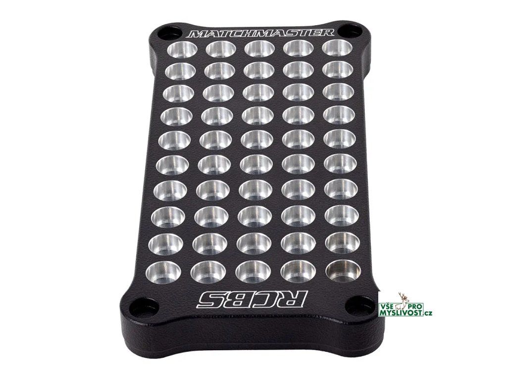 Přebíjecí blok RCBS MatchMaster je praktická pomůcka pro přehlednou a bezpečnou práci při přebíjení nábojů. Umožňuje stabilní uložení 50 nábojnic během jednotlivých kroků procesu přebíjení, jako je plnění střelným prachem, kontrola navážky nebo manipulace s nábojnicemi mezi jednotlivými operacemi.