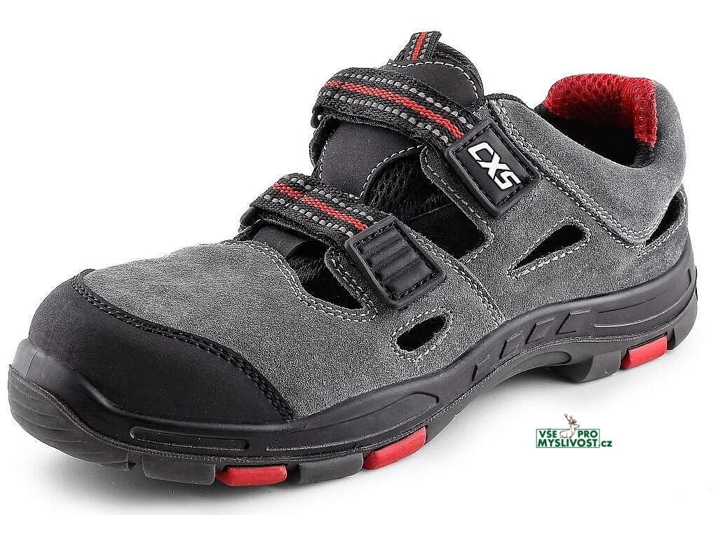Pracovní sandál, kožený, perforovaný, zapínání na suchý zip s PVC reflexními pásky. Materiál: svršek z 1,6 - 1,8 mm kvalitní hovězí broušené kůže, bez kovových součástí, podšívka z prodyšné a oděru odolné textilie, podešev: PU-guma, protiskluzová, antistatická, olejivzdorná, odolná proti kontaktnímu teplu do 300 °C.