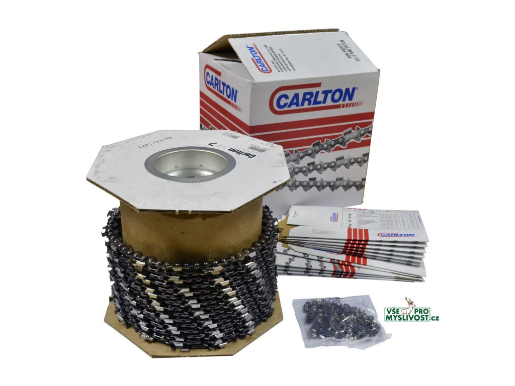 Role pilového řetězu Carlton dlouhá 100stop (1640 článků). Řetěz 1,6 mm s dělením .3/8", hranatý zub.Průměr pilníku: 5,5 mm