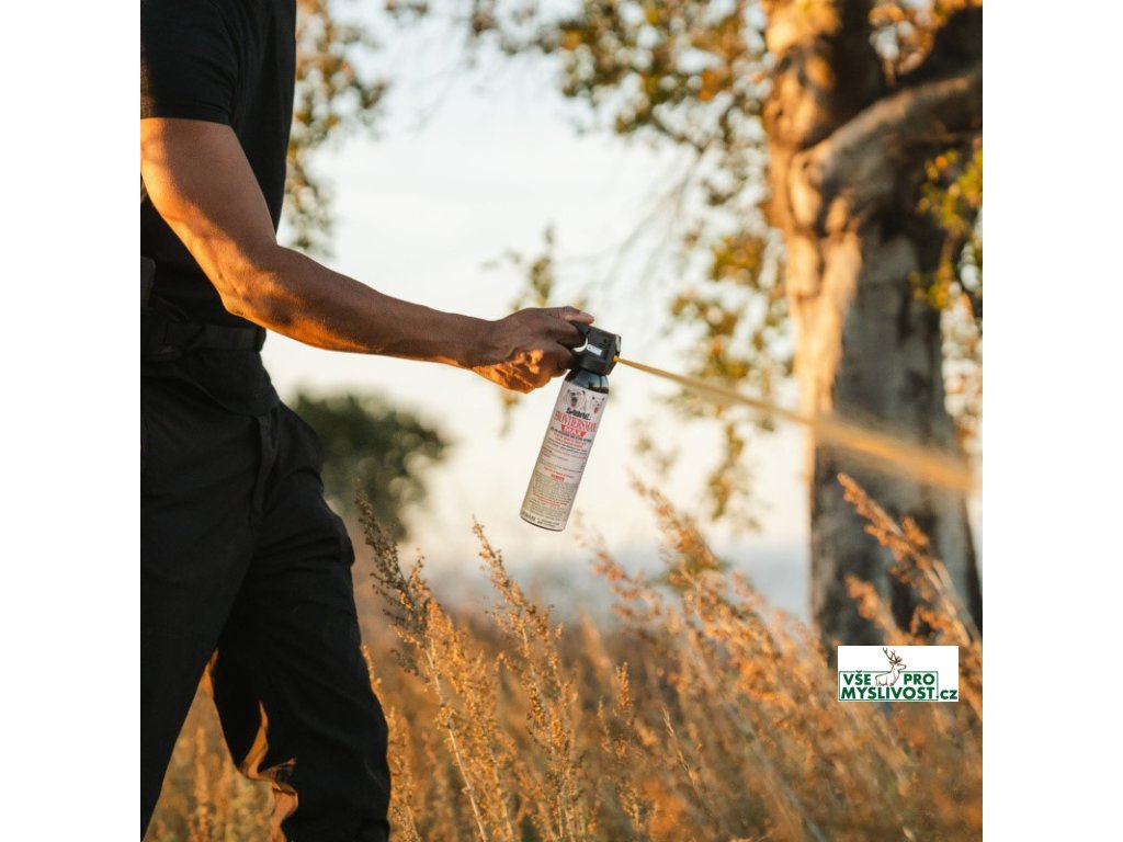 • další výhodou tohoto spreje je, že účinný dostřel je až 12 metrů, díky tomu ho můžete použít z bezpečné vzdálenosti