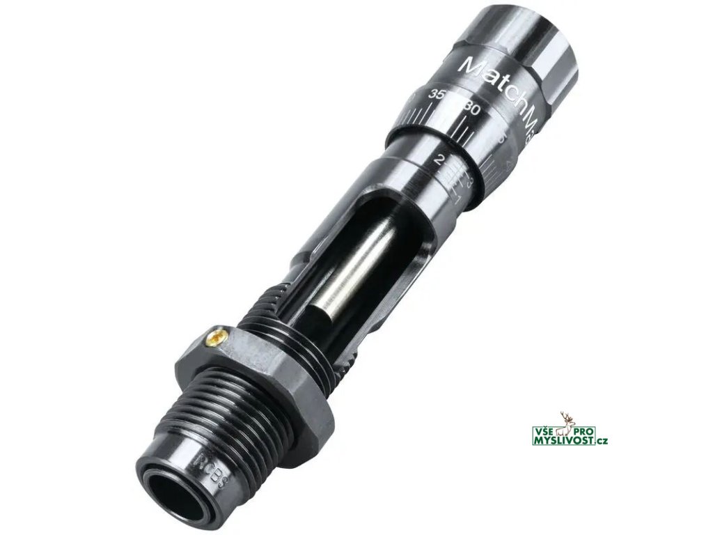 Matrice Matchmaster se od ostatních liší přítomností okénka pro usazení střely a systémem pro její uchycení. Jednoduše vložíte střelu do okénka a zvednete nábojnici do matrice, aby se střela usadila. Vnitřní objímka zachytí a udrží střelu v dokonalé souososti s nábojnicí a zajistí tak její přesné usazení.