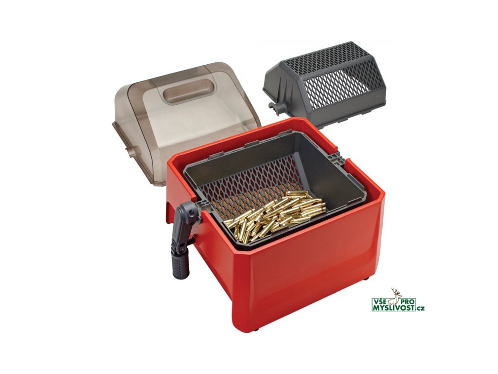 Rychle oddělte mosazné nábojnice od kukuřičného nebo ocelového vibračního média. Při několika otočeních rukojeti se dostane médium na dno sítka, takže nábojnice zůstanou čisté a připravené k použití. Sítko uzamyká buben, čiré polykarbonátové víko umožňuje snadné sledování průběhu