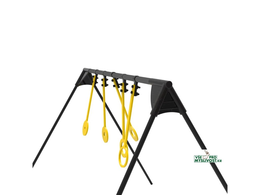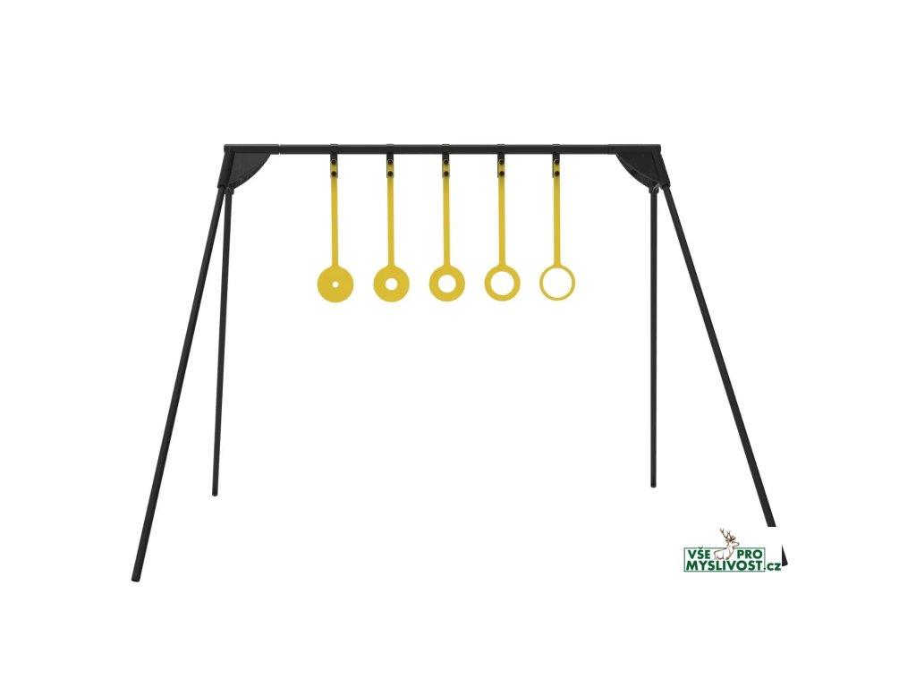 - Certifikovaná 1/4" AR500 ocel odolávající zásahům všech okrajových ráží včetně .22 Magnum a 17HMR - Pět kruhových terčů o průměru 7,62 cm (3") se zvětšujícími se středovými otvory pro trénink přesnosti - Možnost soutěží a zábavných her s přáteli i rodinou - Skládací rám z ocelových trubek a polyuretanových spojů ro snadnou přepravu a rychlou montáž - Žlutý práškový lak zabraňuje korozi a je dobře viditelný v každém terénu
