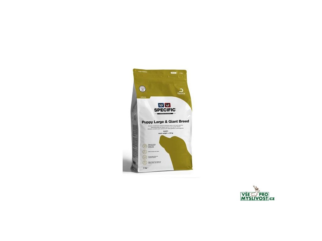 Toto krmivo je velmi vhodné pro štěňata velkých a obřích plemen. SPECIFIC™ CPD-XL Puppy large & Giant Breed je možné podávat od doby odstavu (5.-6. týden života) do dosažení 80% tělesné hmotnosti dospělého jedince. Poté je vhodné postupně přejít na krmivo SPECIFIC™ CXD-XL Adult large & Giant Breed/CXW Adult All Breeds.