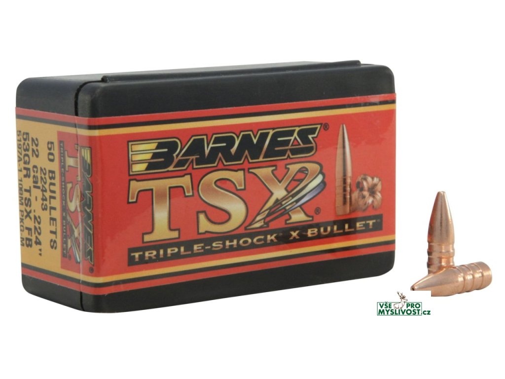 Střela Barnes, TSX, .224"/5,56mm, 53GR (3,43g), Flat Base TSX