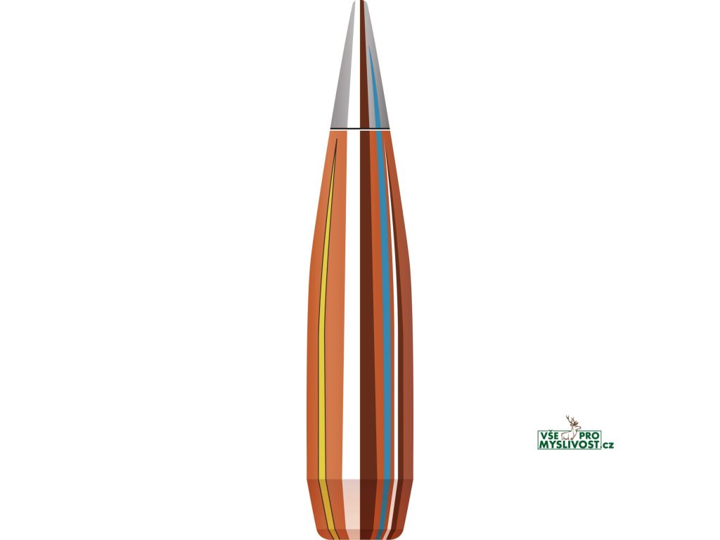 Konstrukce střely Hornady A-MAX vznikla z neúnavného uplatňování všeho, co víme o balistice a letových vlastnostech. Závodní střelci totiž vyžadují dokonalost od svých nábojů pokaždé, když vstoupí na střelnici. Aerodynamický ogivální profil, ostrá špička a nepřekonatelná soustřednost designu A-MAX mu dávají extrémně vysoký balistický koeficient pro téměř dokonalost v letu. Střela A-MAX je konečným výsledkem více než půlstoletí studia výkonnosti střely. Každý aspekt přesnosti byl vložen do střely A-MAX. Od jeho polymerové špičky až po úhel základny je střela A-MAX navržena pro extrémní přesnost.