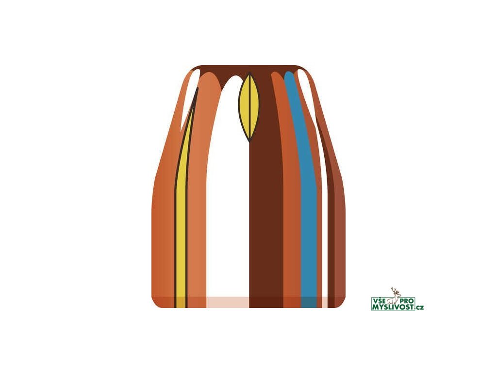 Plášť chrání špičku střely, aby dutina při nárazu správně fungovala, zatímco rovnoměrná hustota jádra zajišťuje vyváženou expanzi a stabilitu za letu.