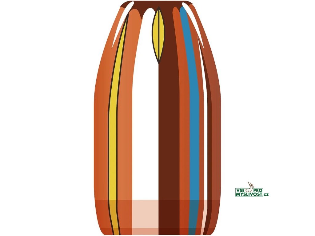 Plášť chrání špičku střely, aby dutina při nárazu správně fungovala, zatímco rovnoměrná hustota jádra zajišťuje vyváženou expanzi a stabilitu za letu.