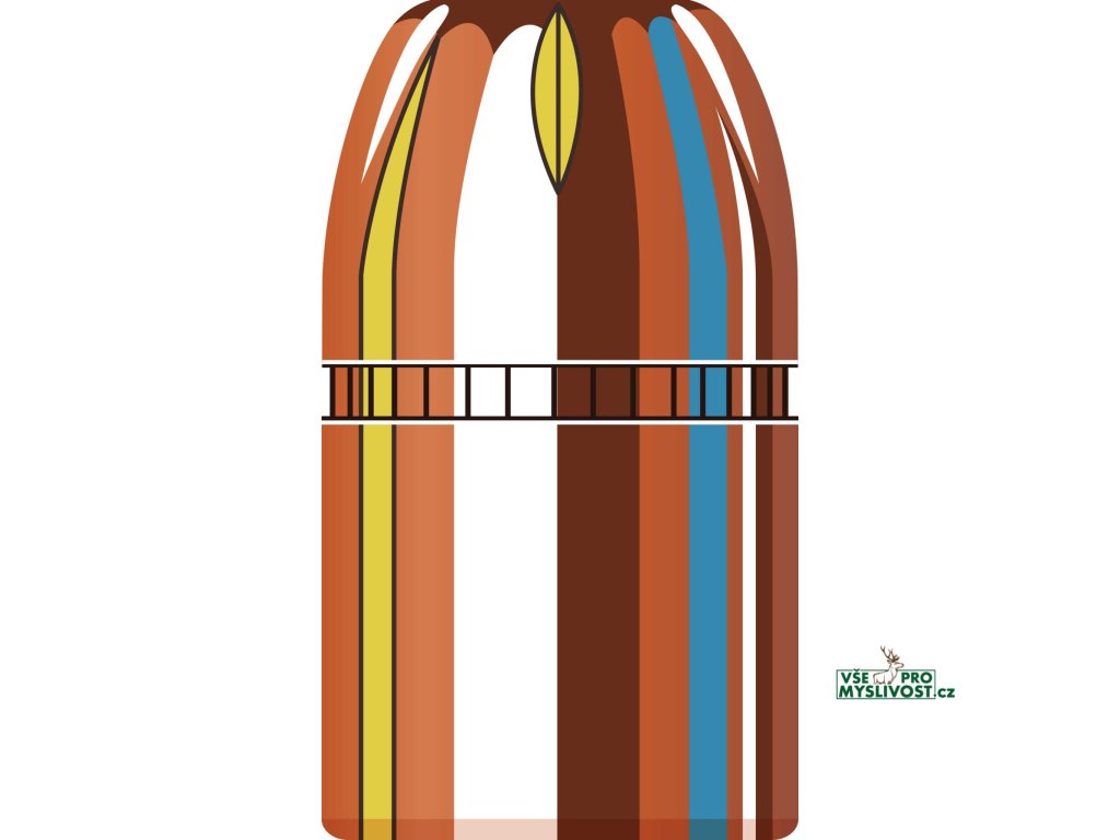 Plášť chrání špičku střely, aby dutina při nárazu správně fungovala, zatímco rovnoměrná hustota jádra zajišťuje vyváženou expanzi a stabilitu za letu.