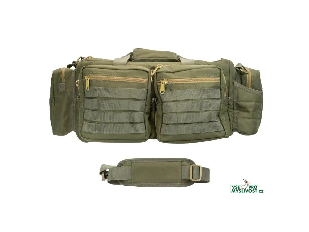 - komora s nastavitelnými přepážkami na suchý zip - postranní kapsu na doklady, čištění atd. - velkou postranní kapsu s integrovanými pouzdry na zásobníky - dvě postranní kapsy - pevnou kapsu na pití - malou kapsu (například na nábojnice) - ergonomický popruh s polstrovaným a protiskluzovým povrchem - zesílená vypolstrovaná podlážka