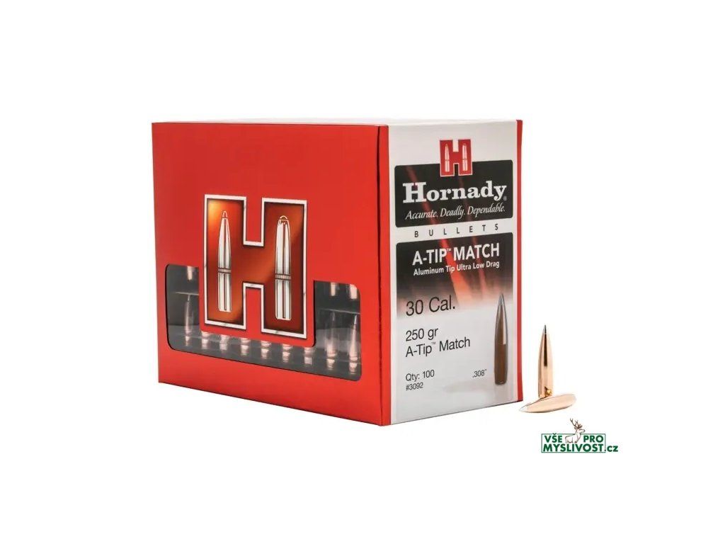 Po letech výzkumu a testování představují Hornady svojí dosud nejlepší střelu. Střela A-Tip je precizně vyráběna a po všech kontrolách kvality má vzniklá střela skvělé balistické vlastnosti. Tato střela je přesná na obrovské vzdálenosti a má opravdu nízký odpor vzduchu. ( Střelci trefují cíle do vzdálenosti 3,8 km / 2,4 míle)