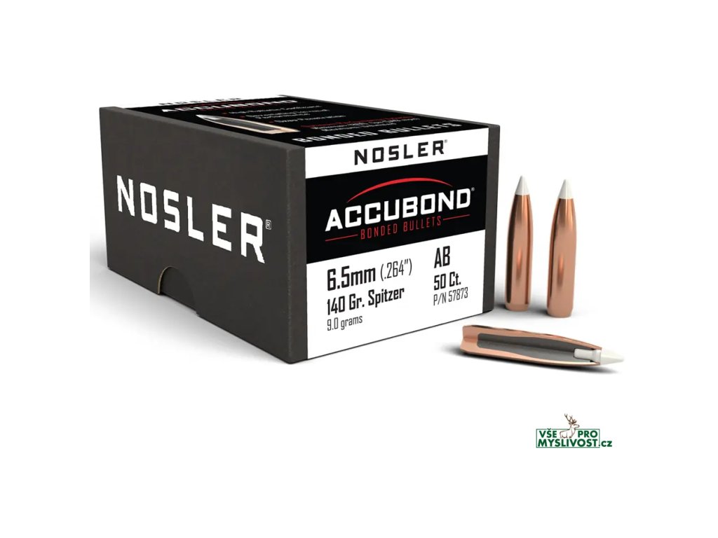 Střely Nosler AccuBond 6,5mm, dia .264, 140grs (9g). SKU: 57873