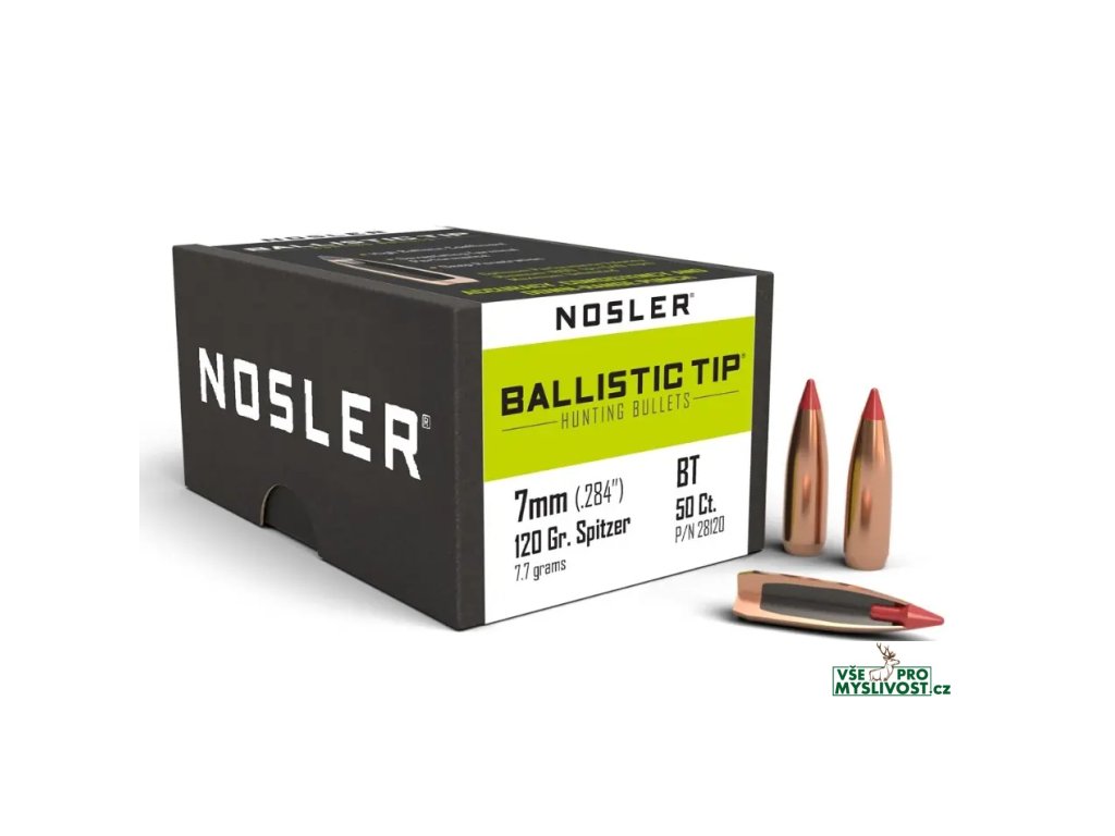 Střely Nosler Ballistic Tip Hunting 7mm, dia .284 120grs (7,7g). SKU: 28120
