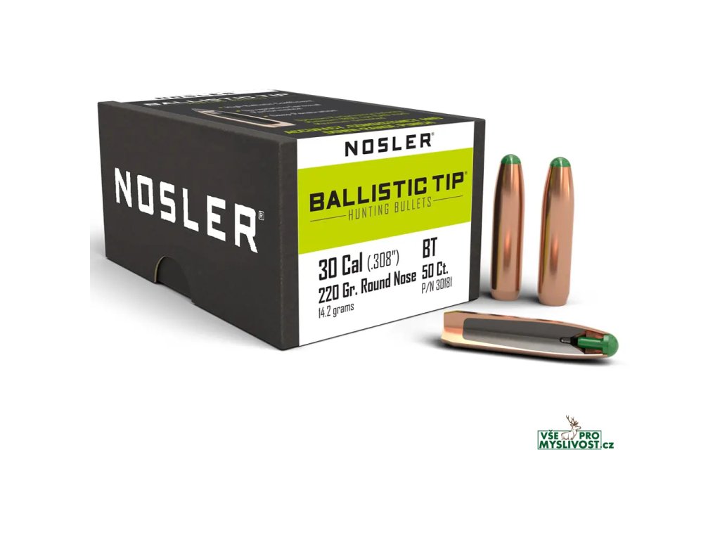 Subsonické střely Nosler Ballistic Tip Hunting .30 cal, dia .308, 220grs (14,2g). SKU: 30181