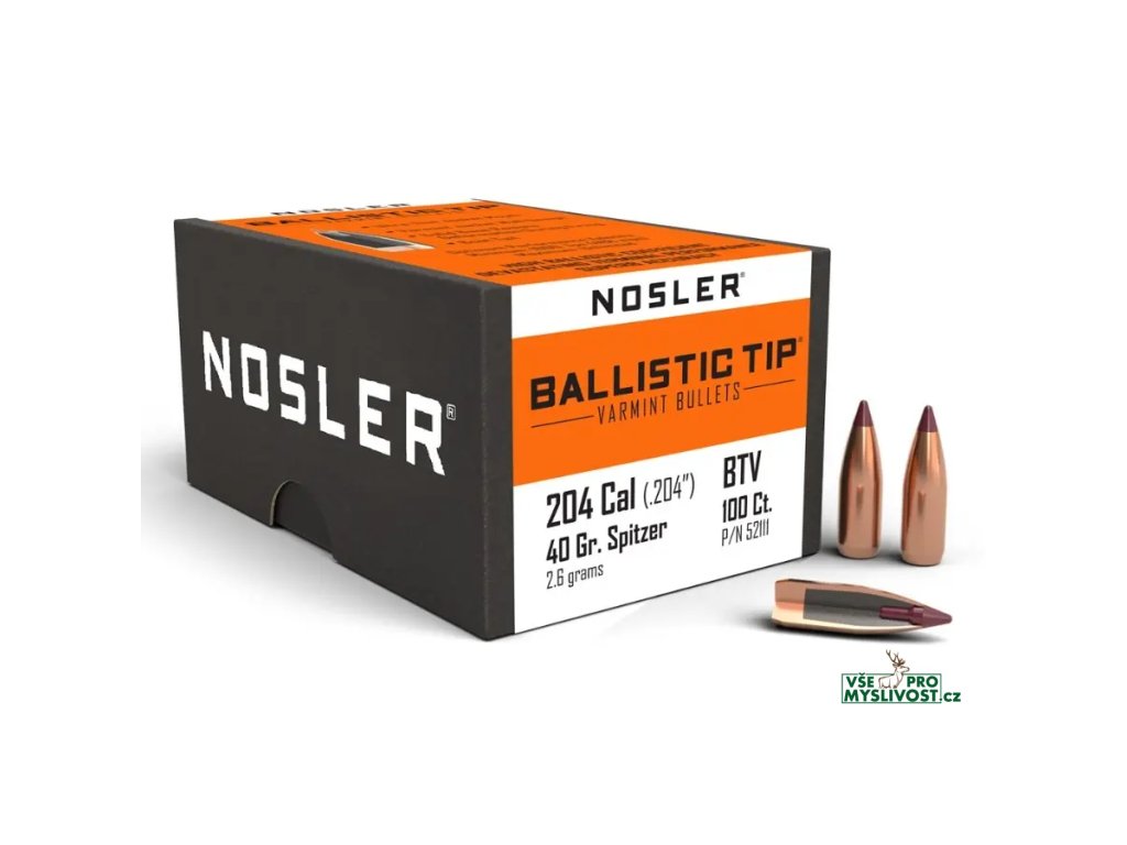 Střela Nosler Ballistic Tip Varmint .204 Cal., dia .204, 40grs (2,6g). SKU: 52111
