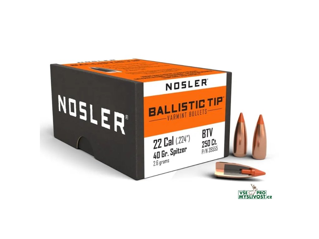 Střely Nosler Ballistic Tip Varmint .22 Cal., dia .224 40grs (250 ks)