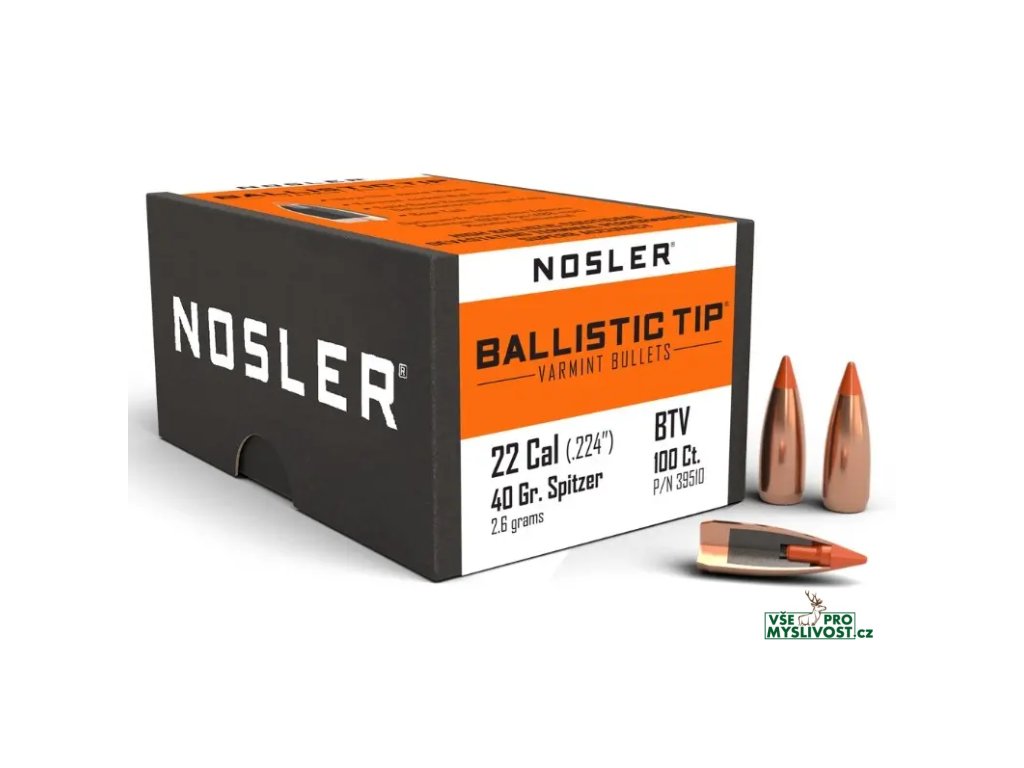 Střely Nosler Ballistic Tip Varmint .22 Cal., dia .224, 40grs (2,6g). SKU: 39510