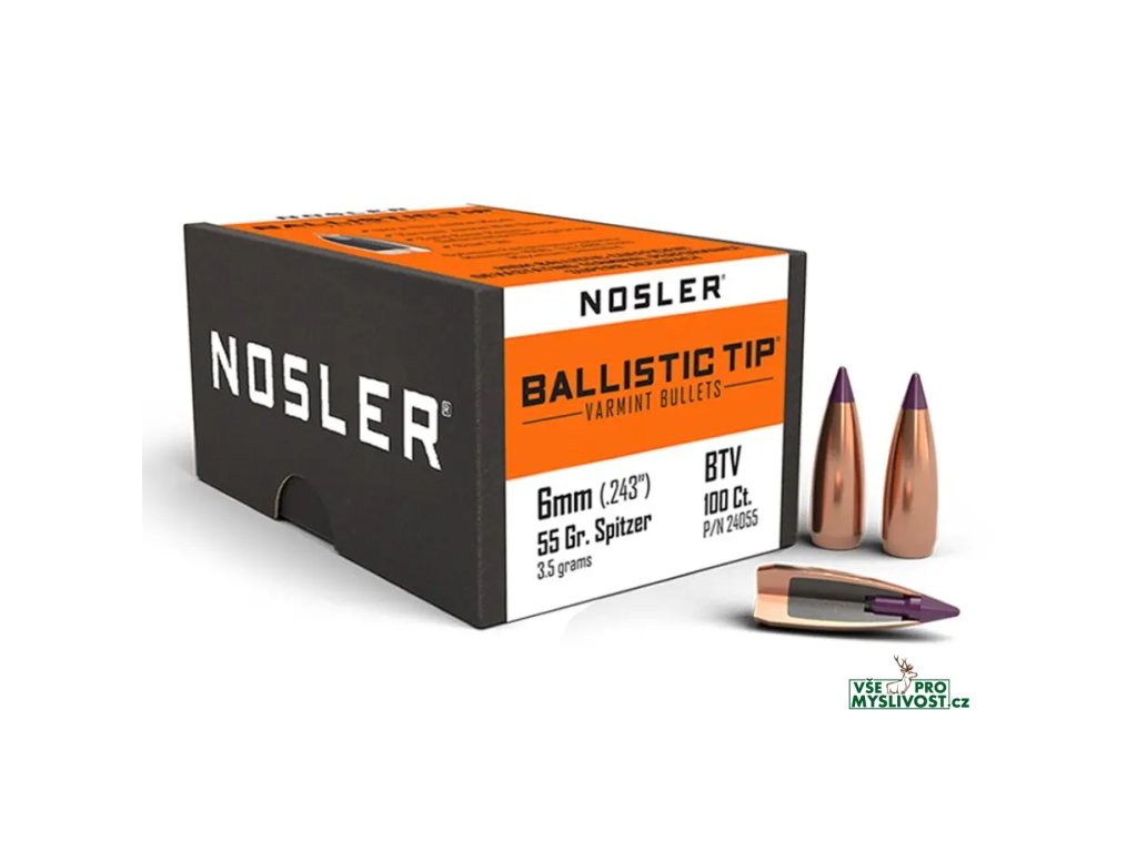 Střela Nosler Ballistic Tip Varmint 6mm, dia .243, 55grs (3,6g). SKU: 24055