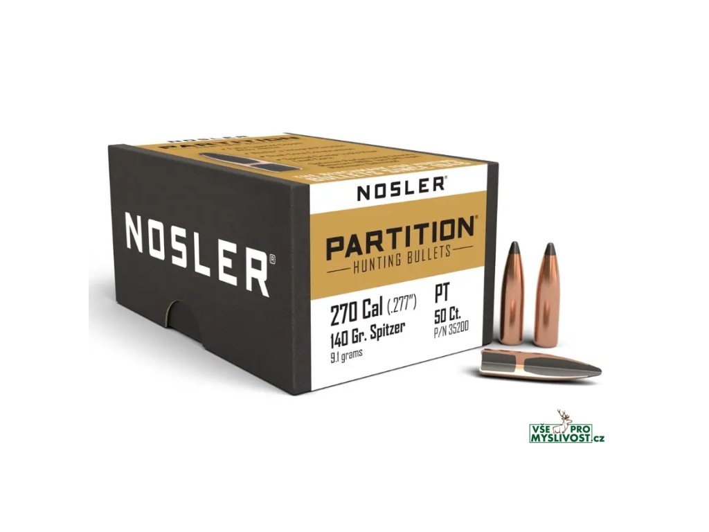 Střely Nosler Partition .270 Cal, dia .277, 140grs (9,1g). SKU: 35200
