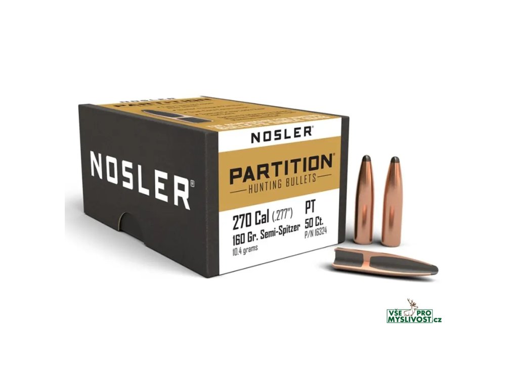 Střely Nosler Partition .270 Cal, dia .277, 160grs (10,4g). SKU: 16324