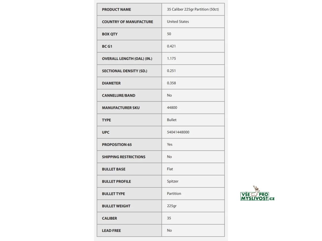 Střely Nosler Partition .35 Cal, dia .358, 225grs (50 ks)