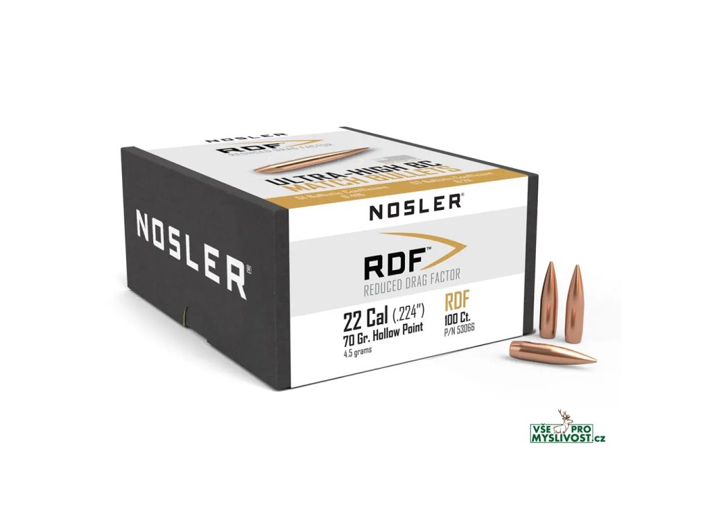 Střely Nosler Reduced Drag Factor (RDF) .22 cal, dia .224, 70grs (4,5g). SKU: 53066