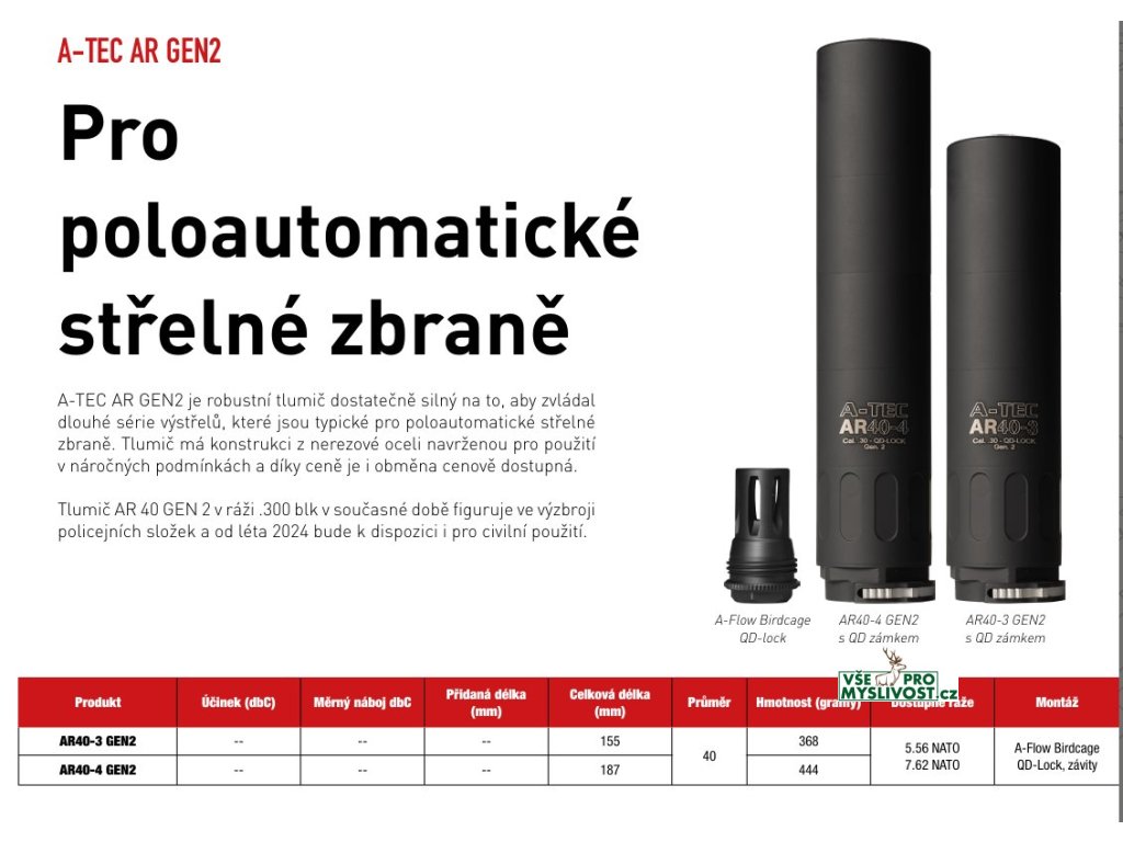 Tlumič A-TEC, AR 40-4 GEN2, Cerakote pro ráže do .223" (5,56mm) na A-Flow Birdcage QD Lock