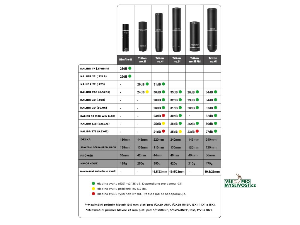 TRITON No. 5i - Front MountedTotožný s modelem Triton No. 5i, ale bez dlouhé zadní části, což znamená, že jej lze namontovat na jakoukoli délku a tloušťku hlavně. Pro vás, kteří chcete výkonný tlumič a nižší hmotnost.