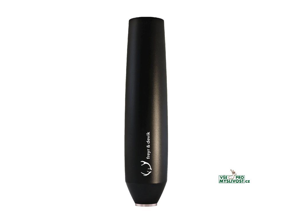 Freyr & Devik je synonymem pro účinné, elegantní a ultralehké tlumiče s bezkonkurenčním poměrem útlumu hluku a hmotnosti. Zde se spojuje forma a funkce a vzniká tlumič, který ladí s klasickými liniemi lovecké pušky. Elegantní, zaoblený tvar je zároveň vysoce funkční. Přispívá k nízké hmotnosti tlumiče a zároveň mu umožňuje klouzat vegetací. Tento jedinečný design je oceněn prestižní cenou RedDot za design.