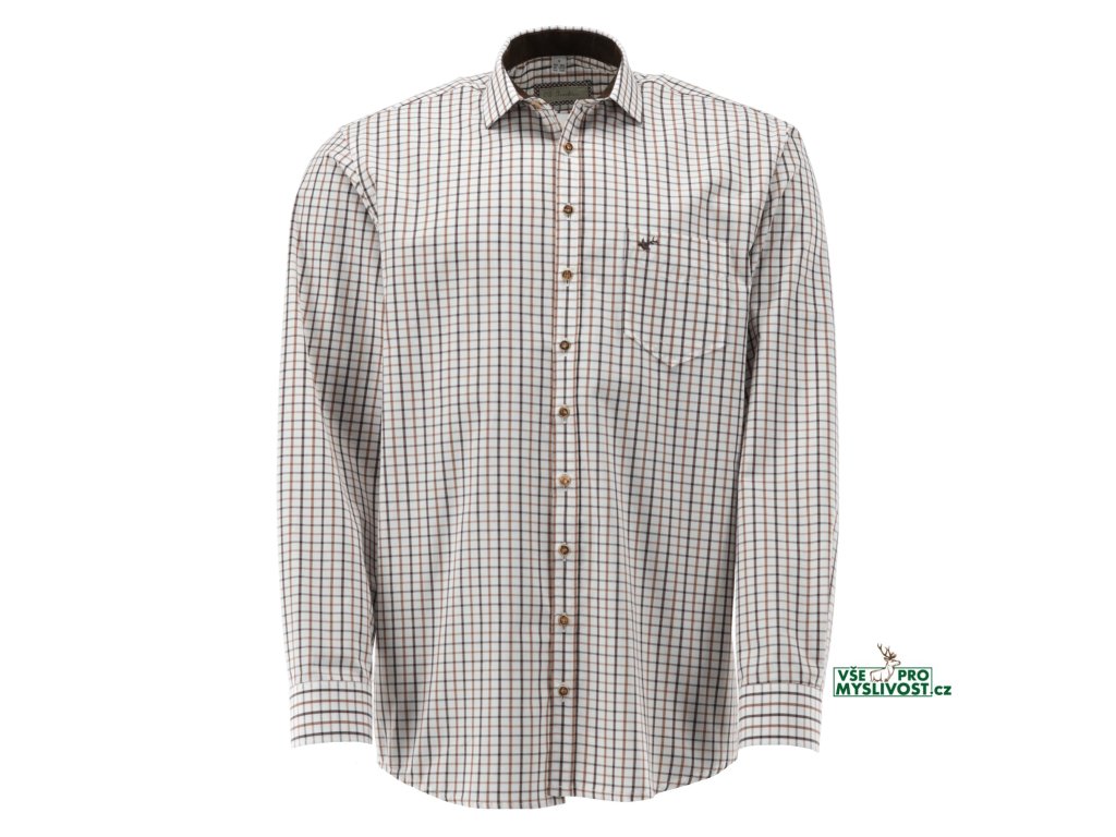 Trachten pánská košile bílá s hnědým károváním